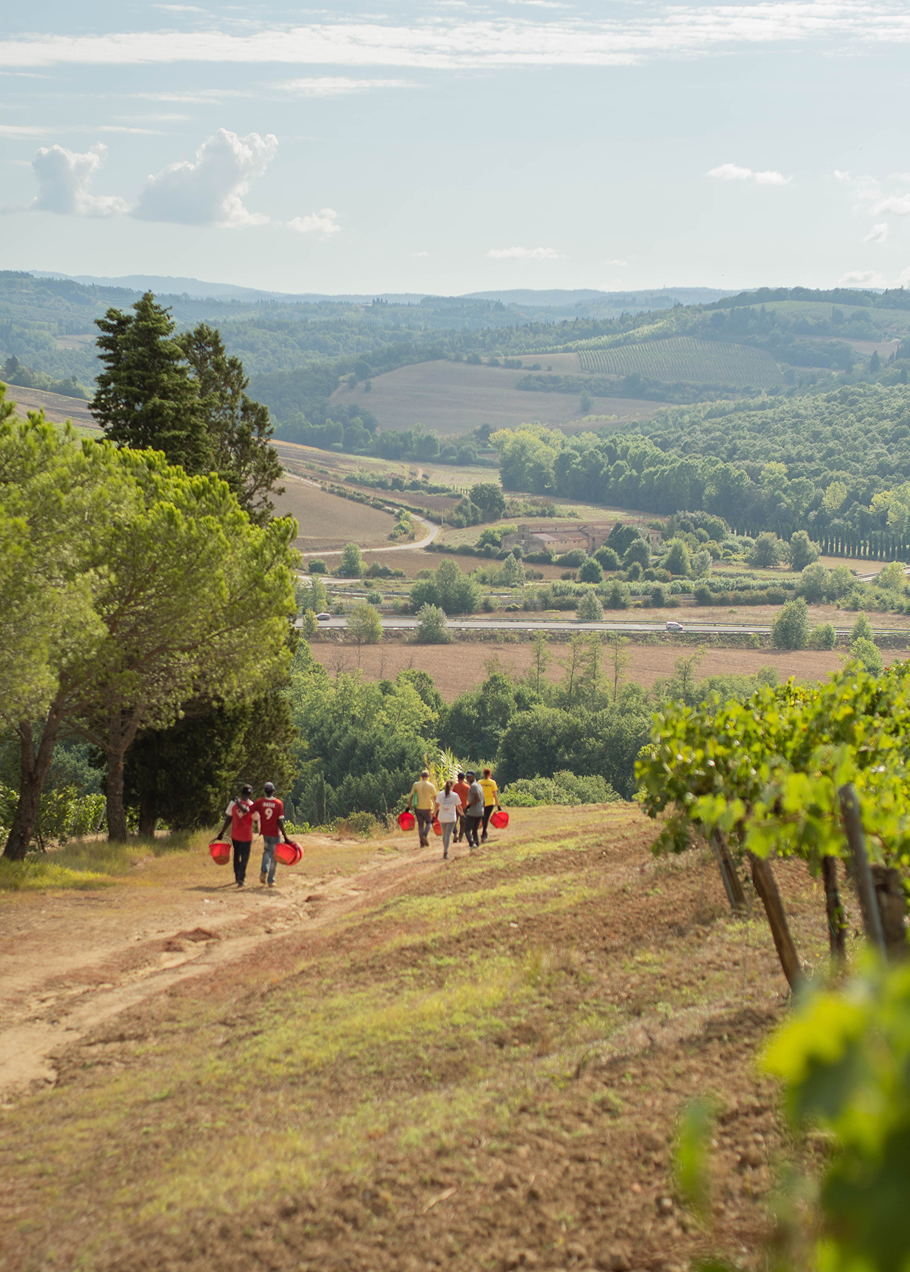 "...with red fruit, blackberries, blackcurrants, black cherries and pomegranates. Hints of mint and Mediterranean maquis, on the finish notes of dark chocolate. The taste silky tannic texture that generates complexity and harmony with the acidity and fruit always present. An elegant and harmonious Sangiovese..."